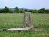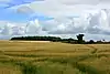 Tiny cairn in middle of field may be inaccessible if crops present.