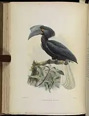 Hornbills are birds in the families Bucerotidae and Bucorvidae. There are currently 62 extant species of hornbills recognised by the International Ornithologists' Union, two in Bucorvidae and 60 in Bucerotidae.[1] Many species of fossil hornbills are known from the Miocene onwards; however, their exact number and taxonomy are unsettled due to ongoing discoveries.