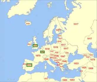 - Luxembourg (963 – 1867; within the Holy Roman Empire, Bohemia, the Netherlands, Austria, France and Belgium; became constitutional monarchy)