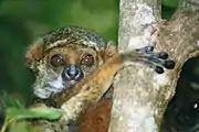 The endemic primates of Madagascar, the lemurs, constitute a single clade and are the largest branch of strepsirrhines. It has been proposed that a common ancestor of all Madagascar's lemurs rafted across the Mozambique Channel from Africa[23][24][note 7] between 50 and 60 million years ago.[16][17] However, findings of similarities in dentition between several African primate fossils and aye-ayes, the most basal of lemurs, have led to the alternate proposal that the ancestors of aye-ayes colonized Madagascar separately from other lemurs.[25]
