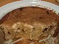England | Sliced potatoes stacked on top of each other and baked then fried, sometimes containing root vegetables and topped with cinnamon. |