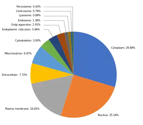 The human genome, categorized by the predicted subcellular location distribution of each gene product.[8]