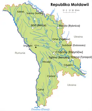 Map of Moldova with main rivers