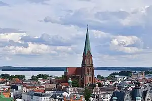 117.5 m (385 ft) | 1892 | Schwerin | Lutheran | 53°37′47″N 11°24′50″E / 53.629626°N 11.413898°E | Tallest church in Mecklenburg-Vorpommern; tallest in Mecklenburg | |