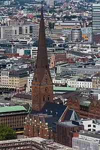 125.4 m (410 ft) | 1963 | Hamburg | Lutheran | 53°33′01″N 10°00′01″E / 53.550359°N 10.000359°E | Fourth-tallest church in Hamburg; new, modern spire finished 1963 | |