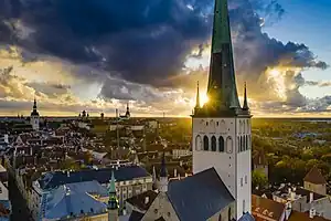123.7 m (405.84 ft) | 1450 | Tallinn | Baptist | 59°26′29″N 24°44′50″E / 59.441378°N 24.747334°E | Tallest church in the Baltic states; tallest in Estonia; tallest Baptist church; according to some sources also the tallest building in the world from 1549 to 1625[note 1] | |