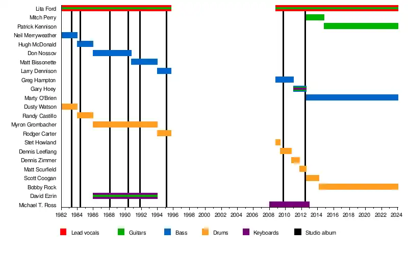 - ↑ "Lita Ford Tour History from 2008 to 2016: Lita Ford Past Tour Dates". Bandsintown.com. Retrieved 20 November 2015.