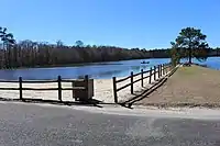 Little Ocmulgee State Park & Lodge is a 1,360-acre (550 ha) Georgia state park located 2 miles (3.2 km) north of McRae-Helena on the Little Ocmulgee River. Part of the park was initially built by the Civilian Conservation Corps during the Great Depression, around the natural diversion of the Little Ocmulgee into a lake. This is a 256-acre (104 ha) lake with beach, and the park includes a 60 room lodge and a championship 18-hole golf course with pro shop, known as the Wallace Adams Memorial Golf Course.[1] The soil around the Ocmulgee River and the Little Ocmulgee is a fine white sand, and therefore the lake has its own "beach sand". Also within the park is the 2.6-mile (4.2 km) long Oak Ridge Trail, allowing visitors to see native wildlife and plants.