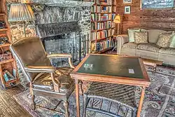 The Little White House is a six-room Colonial Revival structure made of Georgia pine. Three of the rooms were bedrooms: one for Roosevelt, one for his wife Eleanor, and one for his personal secretary. The other rooms were an entrance hall, a living room and a kitchen. Access to the Little White House was from an unpaved road that now only exists in parts. The garage-servant's quarters was built in 1932, followed by the single-story frame cottage that served as a guesthouse in 1933, and finally a cottage for Georgia Wilkins in 1934. Wilkins' family were the original owners of the property.[6]