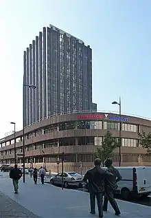 It is centred on Old Hall Street and is the financial heart of Liverpool. Many businesses and companies have a strong presence in the area. Since the mid-2000s many new building and redevelopment projects have taken place in the commercial district, which is now home to some of the tallest buildings in North West England. Some notable properties within the commercial district include the headquarters of the Post & Echo and offices of Unisys, HM Passport Office, BT and Maersk Line. With 36,000 m2 (390,000 sq ft) of floor space, New Hall Place is the largest office building in Liverpool, The Plaza is another large office building in the commercial district which is occupied by a number of different companies. The table below shows the tallest buildings within the commercial district (excluding buildings in neighbouring Prince's Dock or Pier Head – a more detailed list of the tallest buildings and structures in the remainder of Liverpool city centre can be seen here).