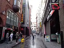 The Cavern Quarter is defined as the narrow streets and alleys bounded by Victoria Street, Stanley Street, Whitechapel, Lord Street and North John Street. The area lies within the Liverpool Maritime Mercantile City boundary and contains historic warehouse buildings from the city's major trading history where some of the goods sold in the old St John's Market on Williamson Square were stored.[22]