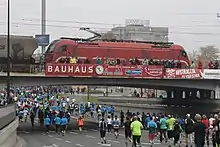 Running on Vienna Street under a railway bridge near Ljubljana station about one kilometre into the race, 2015
