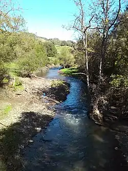Llagas Creek is a perennial stream in Santa Clara County, California, United States.[2] The headwaters rise on the eastern side of Crystal Peak near Loma Prieta. From there, the creek flows northeast along Casa Loma Road, until it reaches Uvas Road, and then turns south. At Oak Glen Avenue, the creek turns southeast, passing through Chesbro Reservoir, and the cities of Morgan Hill, San Martin, and Gilroy. The creek continues its southward flow, eventually joining with the Pajaro River at the San Benito County line.