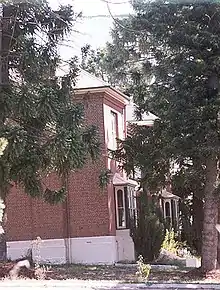 The Hastings family lived the house for a brief period of time in 1863, but do not appear to have been the owners, during which the rear section of the house was burnt down.[12] The house was not rebuilt at this time. During ownership by the Smith family, the coachman's cottage is said to have been built in front of the entrance gates to Llanarth (BDHS nd). Mr Tyne lived in the cottage with his family.[9] In c.1864 there were several small buildings adjacent to Llanarth but the one most prominent was a cottage in front at the entrance gates, known as 'the coachman's cottage'. Mr Tyne and his family lived in the coachman's cottage for quite some time.[13][14][1]