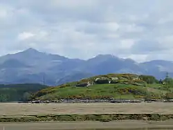 The church of Llanfihangel-y-traethau is half a mile from the coast 3.25 miles (5.23 km) north east of Harlech.[3] When the church was built it was on a rocky, tidal island, reached across the sands at low tide or by boat at high tide.[2] (The rivers Glaslyn and Dwyryd once met near Llanfihangel Church, then ran southwest to reach the sea at Harlech.)[4] The sea between Harlech and Ynys retreated in the late Middle Ages, and in 1810 a sea wall was built from Ynys to the 'mainland' near Glan-y-Wern, and another from Glany-Wern to Bont Briwet, the toll bridge to Penrhyndeudraeth. In 1856 plans were made to drain the marshland between Talsarnau and Harlech, to be followed by construction of the lower road (now the main road, the A496) from Talsarnau via Ynys to Harlech.[2]