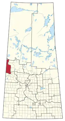 The district was significantly reconfigured before the 2003 general election, losing most areas south and east of Lloydminster to the newly-created Cut Knife-Turtleford while gaining a large area north of Lloydminster (along the Alberta border) from Meadow Lake.[1] The district has not been significantly reconfigured since 2003, but it lost a small amount of territory to Meadow Lake before the 2016 general election, largely due to population growth in the city of Lloydminster. An area immediately southeast of the Lloydminster city limits (including the town of Marshall) will move to Cut Knife-Turtleford for the next general election for similar reasons.