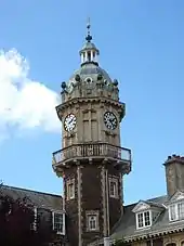 The clock tower of Cossham Memorial Hospital on top of Lodge Hill
