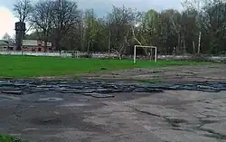 The stadium is near the territory of the Chernihiv Ovruch railway,[2] nearby there are also the Khimik Sports Complex and Tekstylschyk stadium. There is a "tribune" of a row of six or seven wooden benches, where the local youth hang out for beer and seeds in the evening. In 2016 a reconstruction plan have been put in place.[3] In 2017 the city of Chernihiv wanted to reconstruct the stadium "Locomotive" and planned to spend ₴14 million from the city budget on the reconstruction of Lokomotiv stadium.[4][5] In 2017, the mayor, Vladyslav Atroshenko, in turn announced a project for the reconstruction of the Lokomotiv Stadium on Zhabynskoho Street. Its cost is at least ₴70 million. He said that the city has already three stadiums, the main one Gagarin Stadium. The second is the Yunist Stadium and the third stadium is private, Chernihiv Arena at ZAZ.[6]