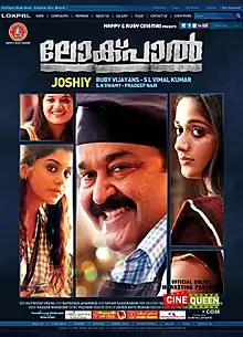 Lokpal is a 2013 Indian Malayalam-language vigilante thriller film written by S. N. Swamy and directed by Joshiy.[4] The film stars Mohanlal as chef Nandagopal who leads a double life with an alter ego named Lokpal, a vigilante fighting against corruption. Kavya Madhavan, Meera Nandan, Manoj K. Jayan, Thambi Ramaiah, and Sai Kumar plays supporting roles.[4][5] The soundtrack was composed by Ratheesh Vegha. The film was released on 31 January 2013.[2][3]