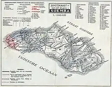 Historical Map of Sumba from 1925, with the area labeled "Lauli" roughly corresponding to the modern district