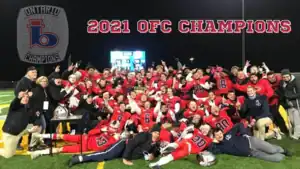 On Nov 20, 2021, the Beefeaters, in a stunning comeback, successfully defended their OFC title against the St Clair Fratmen. Two St. Clair miscues turned the tide in the dying minutes as the London Beefeaters rallied for a second-straight title by hitting a rouge as time expired to take the game 15-14.