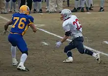 Beefeater 23 Kyle Woldenberg-Puyda meeting Hilltops 76 Brett Pisio at the CJFL semi final [1] [2] [3]