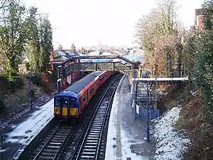 London Road (Guildford) railway station is situated in the east of Guildford in Surrey, England, lying close to the suburbs of Merrow and Burpham. It is 28 miles 47 chains (46.0 km) down the line from London Waterloo.