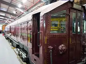 Locomotive ESL103 was scrapped in 1954 as the result of collision damage sustained in 1948. It was deemed to be beyond economical repair.[4] Gradually, de-icing gear was fitted to service trains, beginning with the A stock on the Metropolitan line, and the need for separate sleet locomotives decreased. ESL100 and ESL112 were modified in 1972, so that they could be used to remove leaves from the running rails. Experiments were made to find a suitable fluid which would assist adhesion, but none was found. The two locomotives continued to be used for brushing leaves from the rails. The vehicles were last used in August 1985.[5] ESL107 was the last to be withdrawn, and was preserved by the London Transport Museum.