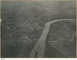 Aerial view of Murray Bridge including north end of Long Island, circa 1920 (State Library of South Australia B 11533)