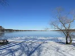 Long Pond is a 1,721-acre (7.0 km2) lake within the towns of Lakeville and Freetown, in southeastern Massachusetts. It shares its waters with Assawompset Pond. These lakes provide a source of drinking water to the city of New Bedford, the largest city in southeastern Massachusetts. Long Pond is roughly one mile (1.6 km) wide by four miles (6.4 km) miles long, and contains three islands within its boundaries. In 1894 Assawompset Pond was dammed, increasing the water depth of Long Pond (which is connected by a small river) by about five feet (1.5 m). This created Nelson Island and caused Sunken Island to disappear due to erosion. All that remains of Sunken Island are the rocks in a shallow area just to the northwest of Lewis Island. Lewis Island is the largest of the three remaining islands today, containing sixteen privately owned cottages, while the second largest island, Nelson Island, was purchased in 2005 and now is a year-round private residence. The smallest island, Goat Island, was recently purchased from the Boy Scouts by a private citizen. Along the perimeter of the lake are many homes and private access points to the waterfront. Long Pond is well known for fishing and boating.