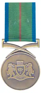 The Long Service Medal, Bronze was instituted by the President of the Republic of Venda in 1985, for award to all ranks for ten years exemplary service.[1][2]