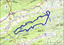 The boundary of the wildland as determined by the Wilderness Society is shown in the adjacent map.[1] Additional roads and trails are given on National Geographic Maps 787 (Blacksburg, New River Valley, Trails Illustrated Hiking Maps, 787).[2] A great variety of information, including topographic maps, aerial views, satellite data and weather information, is obtained by selecting the link with the wild land's coordinates in the upper right of this page.