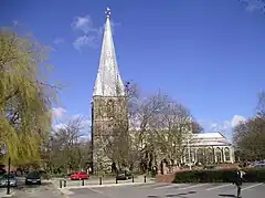 St Mary's Church has a 13th-century lead-covered timber spire similar in design to Chesterfield Parish Church's twisted spire, but Long Sutton's is straight. The church is a Grade I listed building.[19] The spire is 149 feet (45 metres) high.[20]