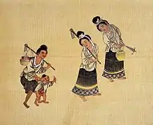 Along with the neighboring Gelao, Miao, and Caijia peoples, the Longjia people had been a subjugated ethnic group under Nasu Yi control in Shuixi 水西 (modern-day Bijie Prefecture) during the Ming Dynasty. Nevertheless, the Longjia were given minor administrative posts since the Yi considered the Longjia to be the best educated among the subjugated ethnic groups, whereas the closely related Caijia people were often assigned to assist in horse stables due to their skills with horses (Herman 2007:74, 77).[2] The Nasu Yi were not native to western Guizhou, but had migrated from the Luyang Mountains of northeastern Yunnan (in modern-day Huize, Xuanwei, and Dongchuan) during the 3rd century and founded the Mu'ege Kingdom around 300 C.E.[2]