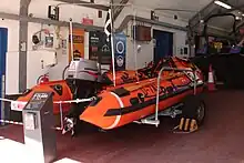 A lifeboat house was erected in 1866 and the first lifeboat, Oxfordshire was paraded through the streets on 28 December 1866 and named by Mrs W H Carew.[2] The RNLI withdrew services from Looe in 1930 on the grounds that the lifeboats of Fowey and Plymouth could cover the area.[3]