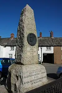 - Lt-Col. Algernon Carteret Thynne (1868–1917), Royal North Devon Hussars, DSO, of Penstowe in the parish of Kilkhampton, Cornwall, killed in action in Palestine during World War I,[3] whose granite obelisk monument survives in the village centre of Kilkhampton[4] with another within the parish church.[5]