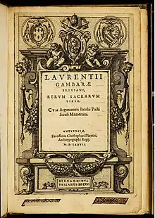 - ↑ Laurentii Gambarae Brixiani Rerum sacrarum liber, Biblioteca Nacional de España.