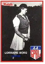 Lorraine Borg (July 18, 1923 – April 16, 2006) was a catcher who played in the All-American Girls Professional Baseball League. Listed at 5' 9", 145 lb., she batted and threw right-handed.[1][2]