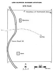 - ↑ "National Register of Historic Places Registration Form: Los Burros Ranger Station". U.S. National Park Service. September 10, 1986. pp. 7:1. Retrieved October 29, 2017.