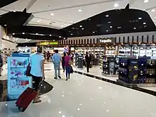 The airport operates two terminals. Terminal 1, covering an area of 16,580 square metres (178,500 sq ft), manages arrival and departure facilities for domestic flights within a single-story building. It features a distinctive roof over the departures concourse with peaked white structures. The arrivals area includes a baggage claim area, car rental services, taxi stands, snack bars, and souvenir shops. The departures section includes a check-in area, a security checkpoint, and a concourse with a food court and 8 gates on the ground level, allowing passengers to walk to their aircraft. From this departure concourse, access to a mezzanine is available, which houses a VIP lounge.[6]