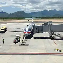 Los Cabos International Airport (Spanish: Aeropuerto Internacional de Los Cabos) (IATA: SJD, ICAO: MMSD) is an international airport located in San José del Cabo, Baja California Sur, Mexico, serving as the main gateway to the popular tourist destination of the Los Cabos region on the Baja California Peninsula. Annually, the airport attracts millions of tourists, predominantly from the United States and Canada, with flights connecting to 30 U.S. cities and 11 Canadian cities. Major U.S. and Canadian airlines operate flights to and from Los Cabos, linking to their primary and secondary hubs.