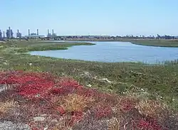 Los Cerritos Wetlands consists of two functioning marshes (Steamshovel Slough and Zedler Marsh), plus a number of seasonal brackish ponds,[3] all with an abundance of wildlife. The wetlands is home to several endangered species, including the Belding's Savannah sparrow, California least tern, California brown pelican, wandering skipper, and the tiger beetle.[4] A number of species protected under other acts also inhabit the wetlands, in addition to the many common plants and animals typical of a California coastal salt marsh habitat.