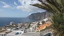 Los Gigantes is a resort town in the Santiago del Teide municipality on the west coast of the Canary Island Tenerife. Its main feature are the giant rock formations, Acantilados de Los Gigantes, that rise from the sea to a height of 500-800 metres (1,640–2,625 ft) after which the town has been named. Los Gigantes means "The Giants".