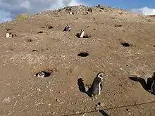 There are many concerns about how tourism may threaten the conservation efforts on the island, specifically in terms of penguin populations. For example, near Chiloe on the west coast of Chile, there are high levels of fishing both to sustain the tourist population and from tourists who themselves wish to participate in fishing.[14] Penguins are the main attraction for tourists and sustain the economy of the region, yet they are threatened by a decrease in food sources because of the high fishing levels. Another concern is that penguin behavior may change in the presence of humans, which may impact their viability and change the natural aspect of the environment.[16] Penguins are shown to produce stress-related hormones when encountering humans, though penguins who live at tourist sites produce fewer hormones than those who do not, suggesting that they have adapted and become more comfortable in the presence of humans.[16] Humbert penguins, for example, have been observed to have lower birth rates in the present of high tourism.[16] Magellanic penguins are believed to be able to better tolerate humans than other penguin species that exhibit stress responses when even one person is spotted at a distance.[17] While the Magellanic penguins may not be affected to the same degree it is still important to minimize human effects on them. Additionally, although Magellanic penguins may be able to adapt to the presence of humans, this does not necessarily occur quickly. Therefore, to give the penguins a chance to grow comfortable, it is important that some parts of the island are prevented from human intrusion. Having part of the area secluded allows penguins to become adapted at a distance before being comfortable enough to build nests in the human-visited areas.[12]