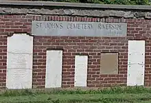 Mounted tombstones from St. John's Cemetery, Pioneer Memorial