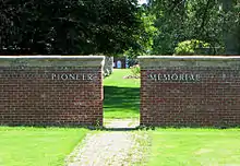 Entrance to Pioneer Memorial that contains headstones from cemeteries of the Lost Villages