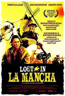 Lost in La Mancha is a 2002 documentary film about Terry Gilliam's first attempt to make The Man Who Killed Don Quixote, a film adaptation of the 1605/1615 novel Don Quixote by Miguel de Cervantes. The documentary was shot in 2000 during pre-production and filming and it was intended as a "making-of" documentary for the film. However, Gilliam's failure to complete his film resulted in the documentary filmmakers retitling their work as Lost in la Mancha and releasing it independently.