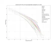 Lotka's law,[1] named after Alfred J. Lotka, is one of a variety of special applications of Zipf's law. It describes the frequency of publication by authors in any given field. Let X be the number of publications, be the number of authors with publications, and be a constants depending on the specific field. Lotka's law states that .