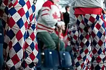 The Norwegian curling team drew international attention to the company, and to themselves, at the 2010 Winter Olympics by wearing Loudmouth's "Dixie-A" pants with red, white, and blue diamonds as a uniform.[3][4] The team wore the pants on advice from second Chris Svae who served as their fashion consultant. The team gave a pair to King Harald V of Norway.[5] A Facebook fan page created for Norway's pants drew more than 500,000 fans during the games.[6][7] During the Olympics, Loudmouth's web traffic increased by a factor of ten and sales tripled.[8]