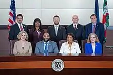 In November 2015, Loudoun voters made history when they elected their first two Black supervisors: Phyllis Randall (Chair-At-Large) and Koran Saines (Sterling).[12] They also elected their youngest-ever supervisor, Broad Run District Supervisor Ron Meyer, who was 26 at the time of his election.[13] Ashburn District Supervisor, Ralph Buona, served as Vice-Chair all four years of the term.